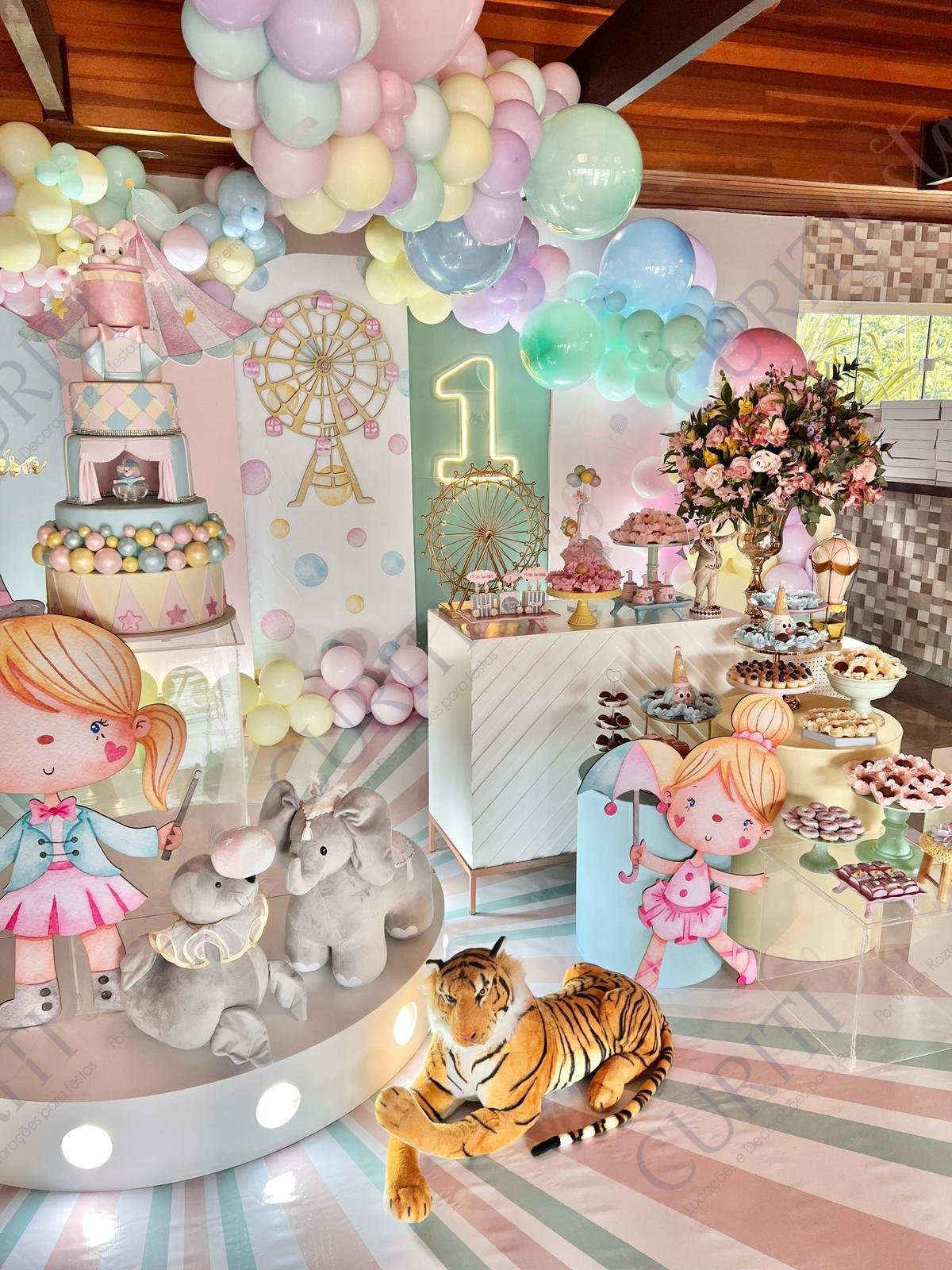 A magia do circo nunca sai de moda! É um tema que transcende gerações e encanta as crianças e também os adultos! Do tradicional ao moderno, podemos utilizar animais, malabaristas, palhaços, mágicos, trapezistas e muito mais para preparar um grande espetáculo.