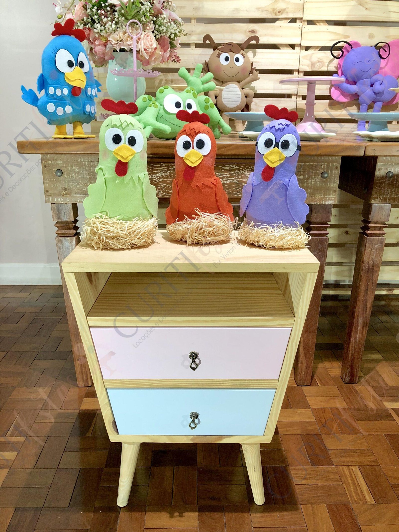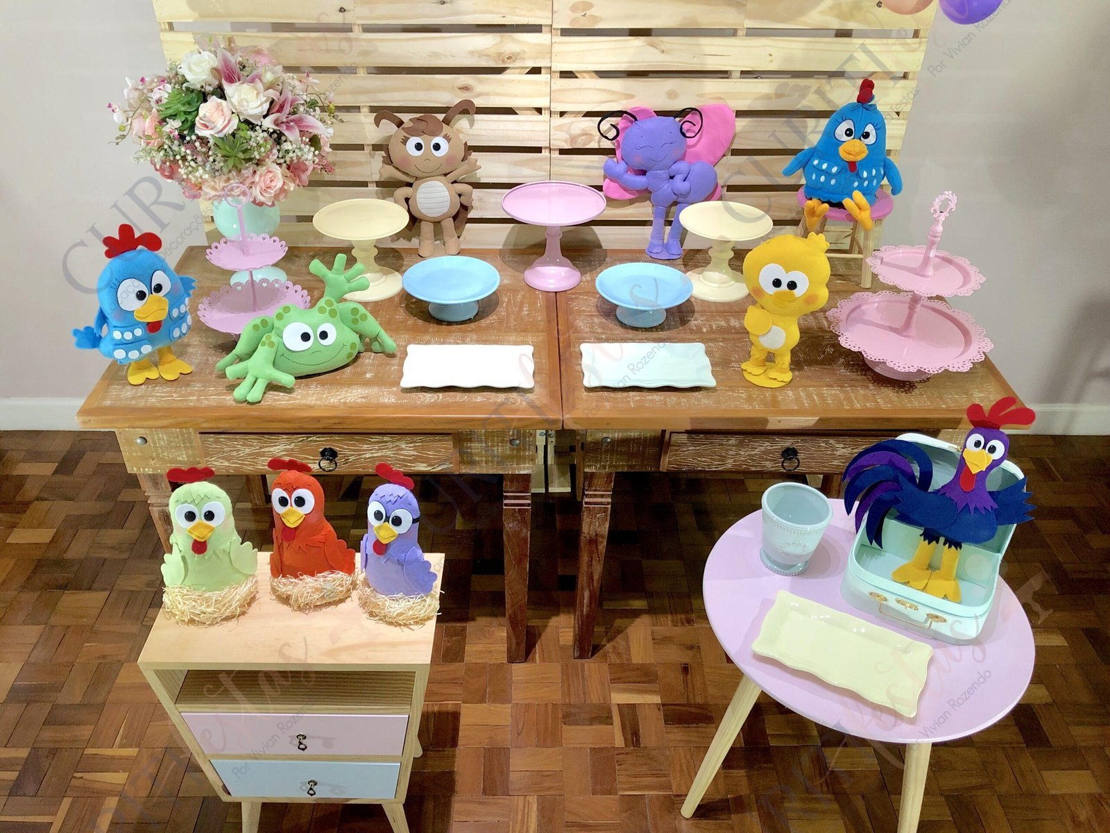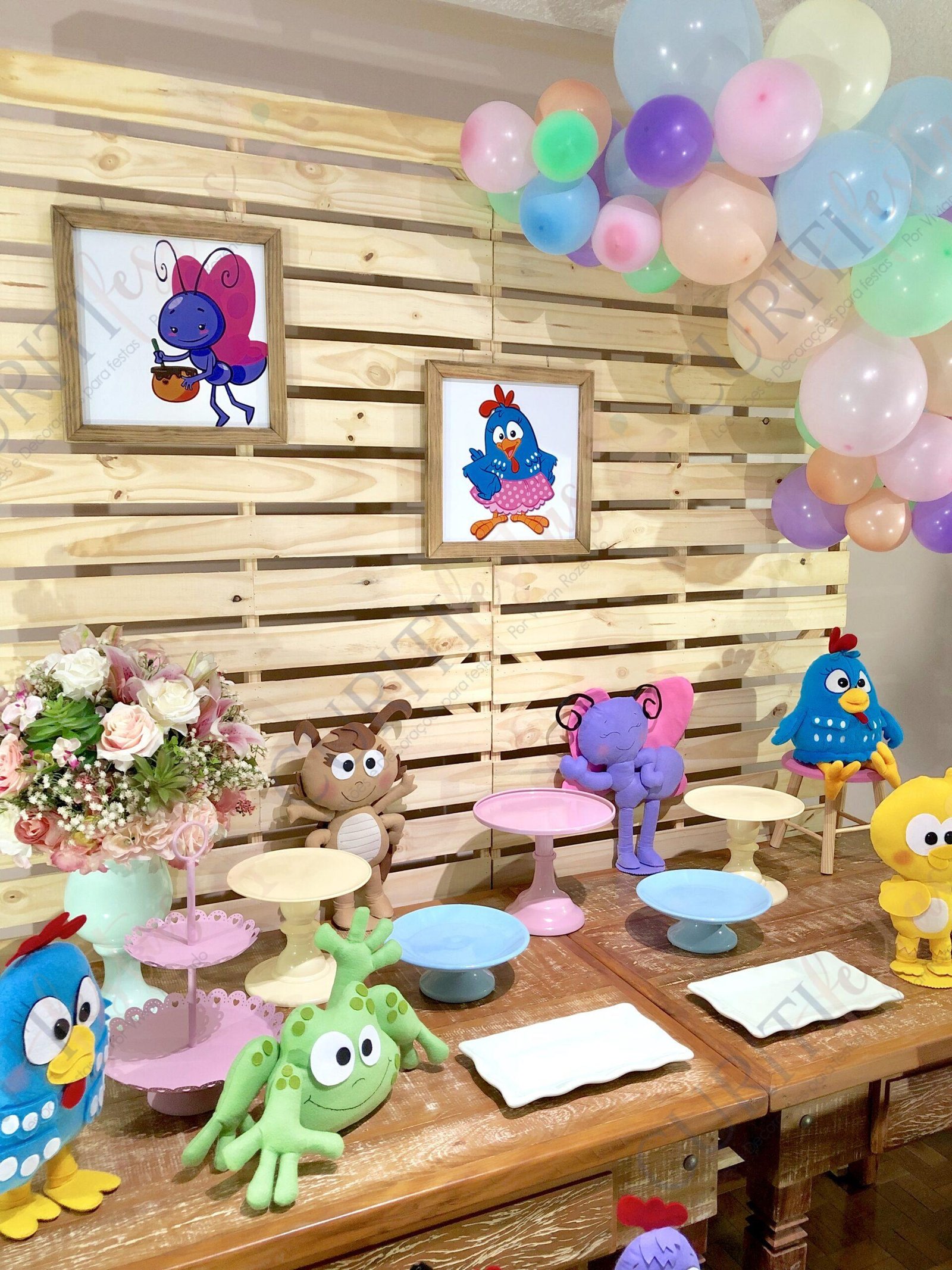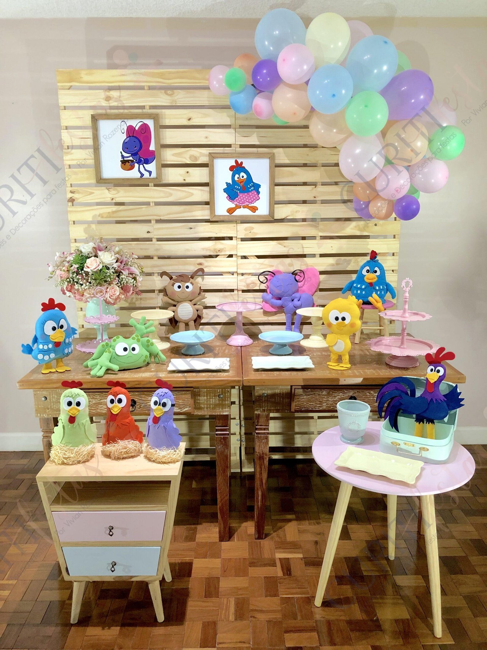 A Decoração de Festa do Tema Galinha Pintadinha veio para ficar e faz um sucesso único! O clássico dos desenhos infantis é realmente diferenciado e acompanha cada criança durante os primeiros anos de vida. Segue então uma sugestão para sua festa. Temos outros tipos de mesa e paineis, bem como cortinas de led e outros objetos para compor o cenário.