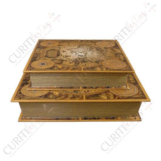 Medidas: Livro Menor – 25 cm x 19 cm x 6 cm Livro Maior – 32 cm x 24 cm x 8 cm